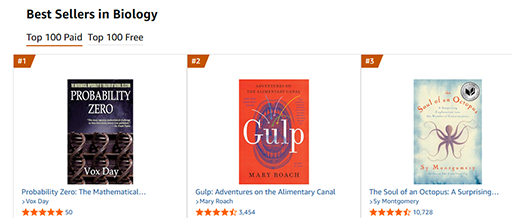 And we’re back with a vengeance. Thanks to everyone who has bought the book, and especially to those who have read and reviewed it. Hopefully we’ll be 1 and 2 in Biology before long.