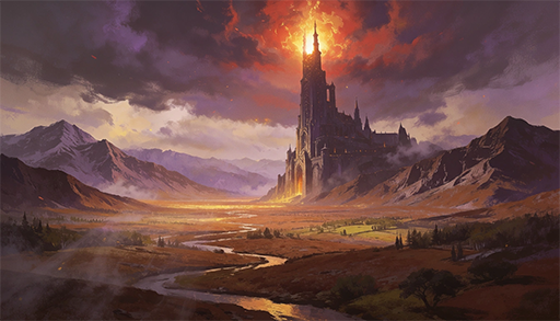 The staircase to the upper chamber of Barad-dûr was a spiral of black stone, nine hundred steps from the library level to the pinnacle, and Sauron climbed it at a pace that would have killed a mortal man. The tower narrowed as he ascended. The walls pressed closer. The air grew hotter and heavier, thick with the ambient sorcery that sustained the great working at the tower’s crown, and the darkness itself seemed to acquire texture — to become not merely the absence of light but a substance, a medium, the stuff from which the Eye was woven.